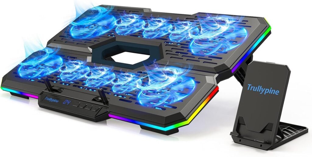 Laptop Cooling Pad, Gaming Laptop Cooler with 10 Quiet Fans, Height Adjustable Laptop Cooling Stand for 12″-17″ Laptops, RGB Lights with Laptop Fan with 2 USB Port and Phone Stand