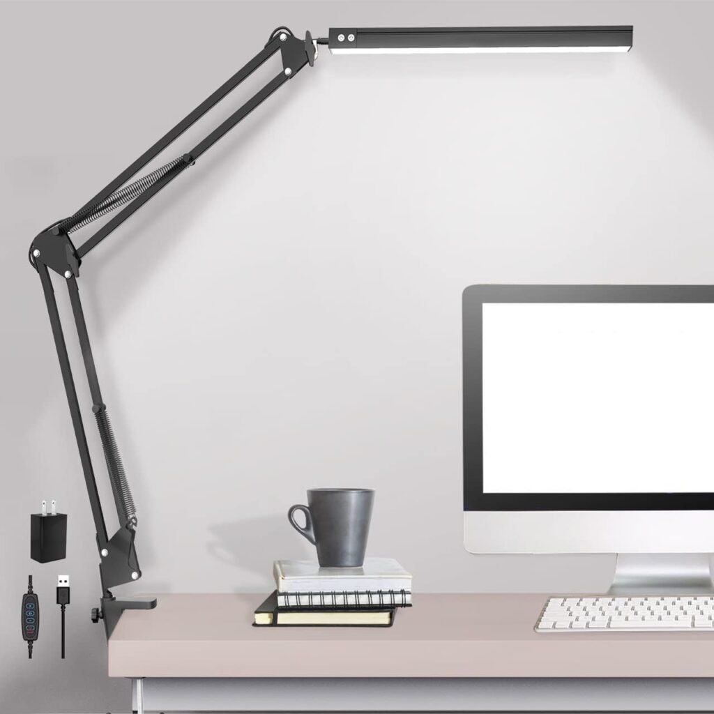 LED Desk Lamps for Home Office,Smart Adjustable Swing Arm Desk Lamp with Clamp,Gooseneck Tall Clip on Desk Light for Sewing,Reading,Drawing,Workbench,Study,Screen,Crafting,Monitor Architect,Computer