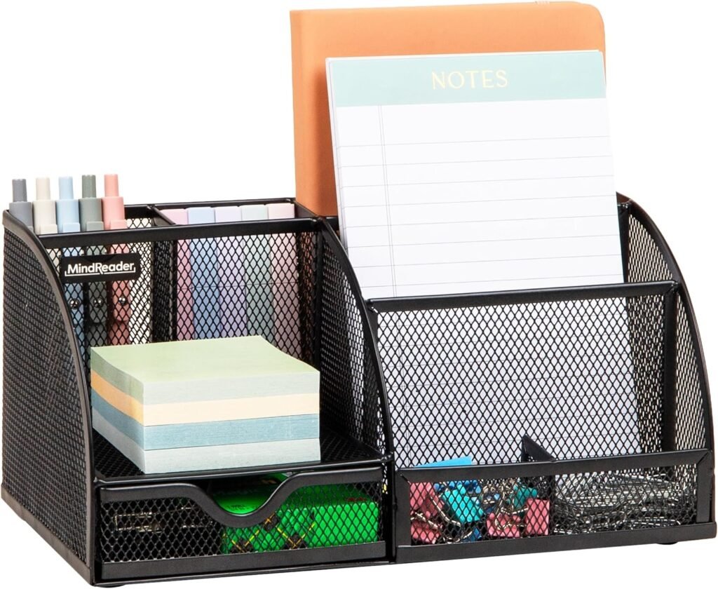 Mind Reader 7-Compartment Desktop Organizer, File & Accessory Storage, Metal Mesh Office Organizer for Desk, Workspace, Mail, Black