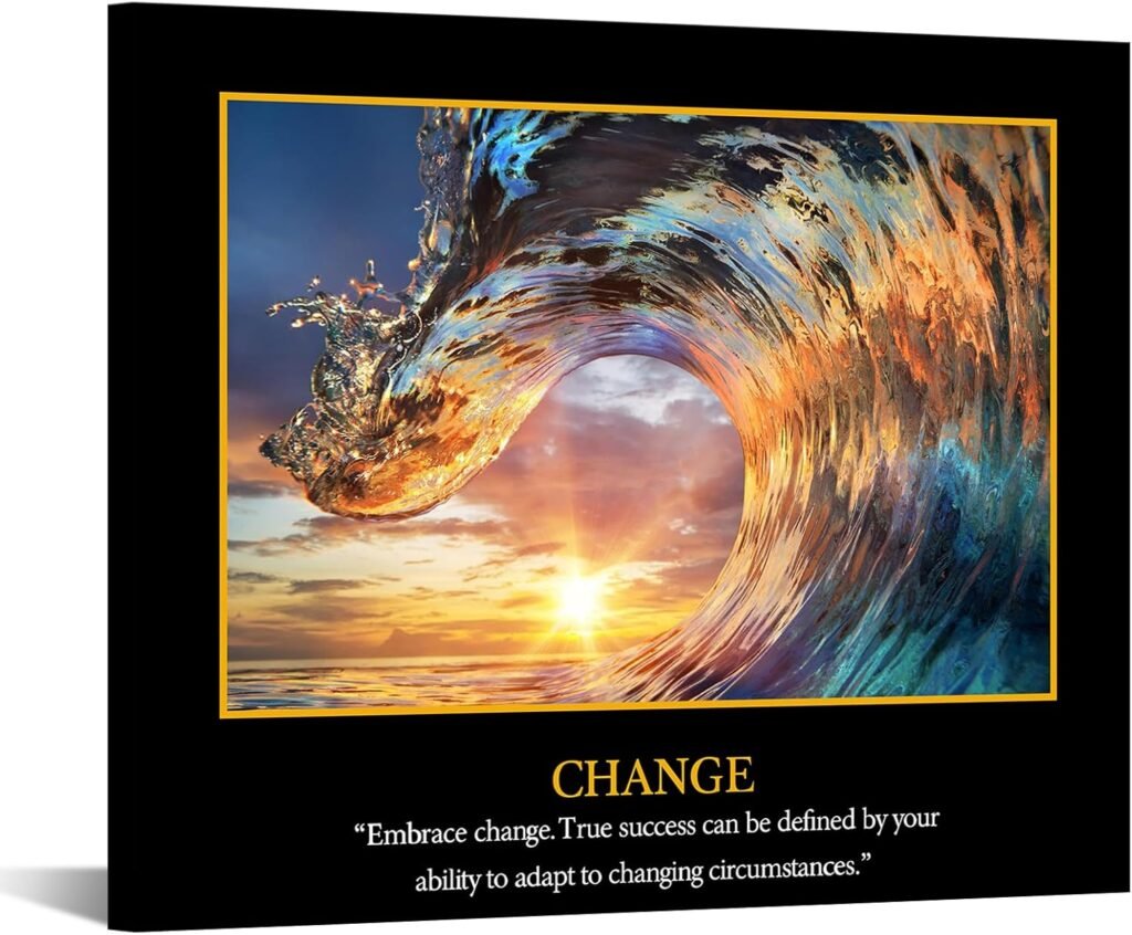 KREATIVE ARTS Motivational Self Positive Office Quotes Inspirational Success Teamwork Posters Canvas Prints Amazing Ocean Wave Pictures Sunset on Sea Landscape Wall Art 20×24