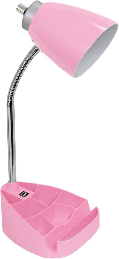 Limelights LD1056-PNK Desk Lamp Organizer with iPad Tablet Book Stand and USB Charging Port, Pink
