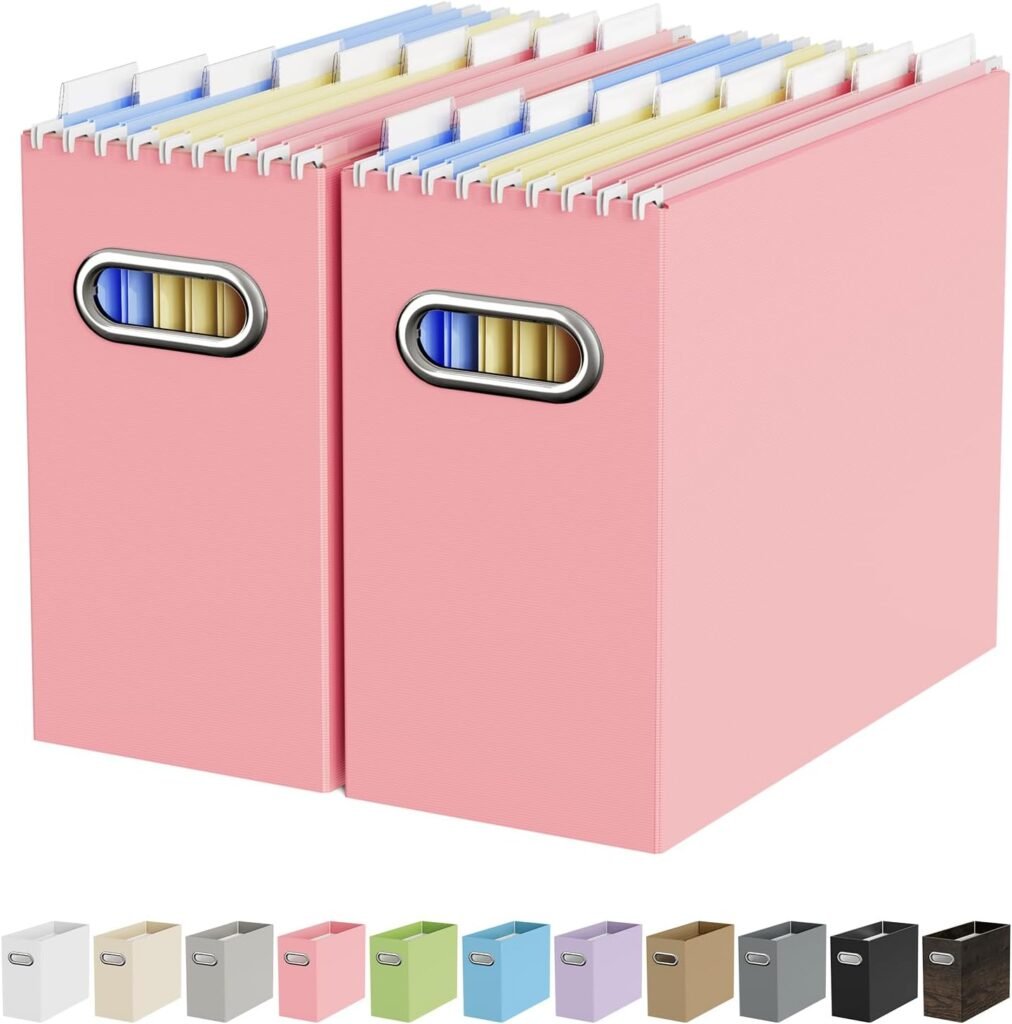 Oterri Cardboard File Organizer Box for Hanging File Folders Letter Size,File Box for Computer Desk,File Cabinet,Working Home,Office,Classroom(Pink,Letter Size – 2 Packs)
