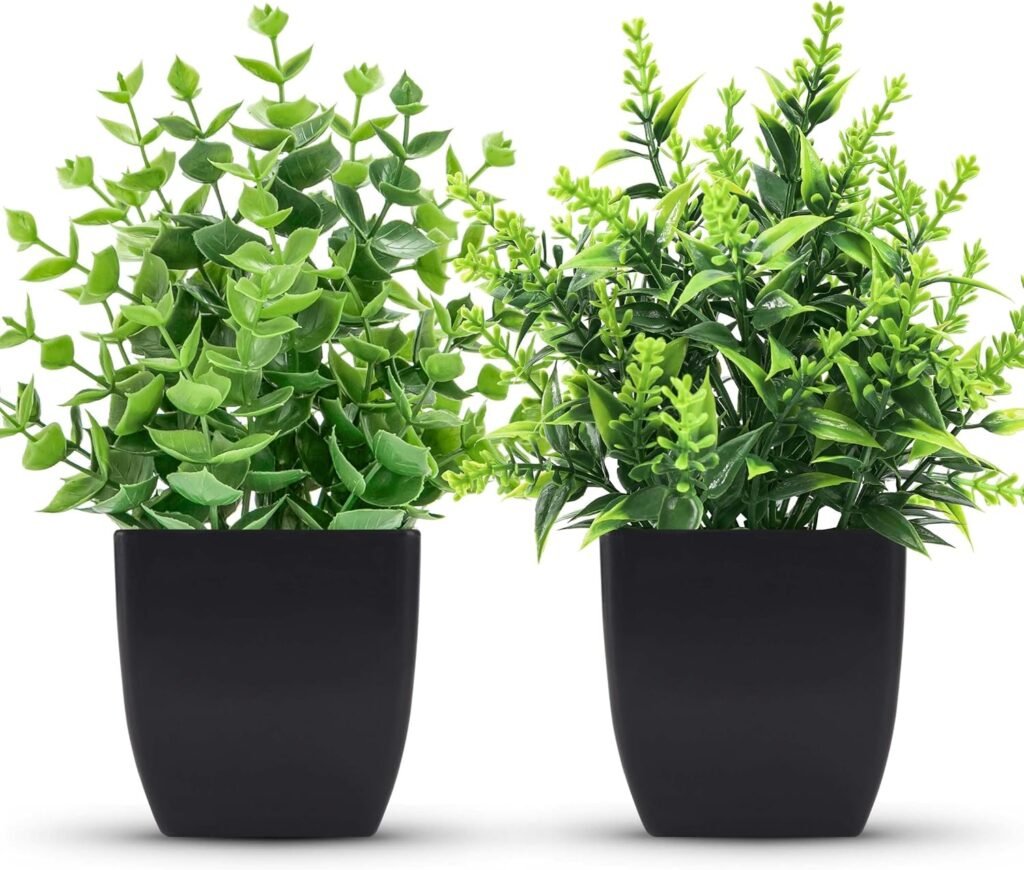 ZJIA 2 Pack Small Fake Plants Black Bathroom Accessories for Home Bedroom Bathroom Kitchen Decor