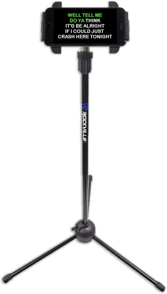 Rockville IPS20 Adjustable Tripod Stand for Tablets and Phones, Universal Fit, 360° Rotation, Collapsible Design, Perfect for Musicians, Presenters, and Content Creators