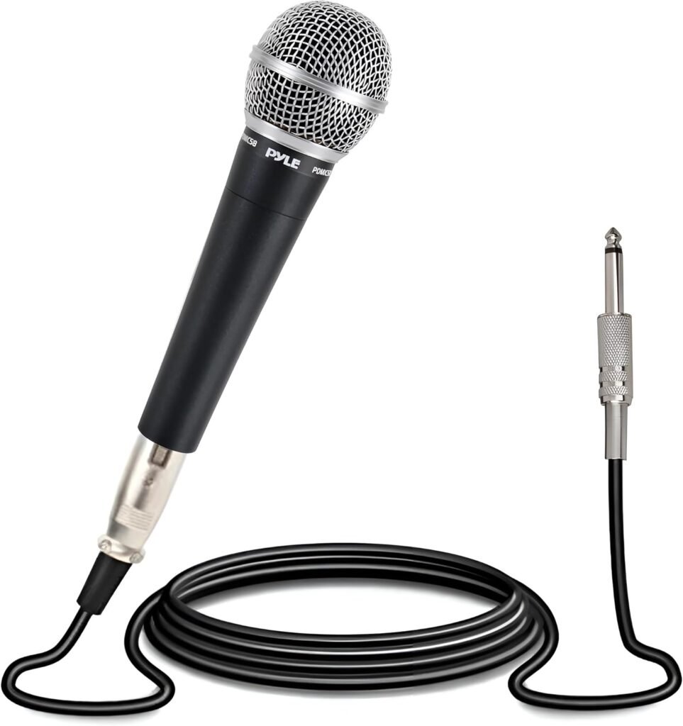 Pyle Microphone, Dynamic Cardioid, XLR Cable Included, Unidirectional, Rugged Construction, Built-in Pop Filter, Perfect for Stage & Studio, High Gain, Ultra-Wide Frequency Response, 15ft Cable