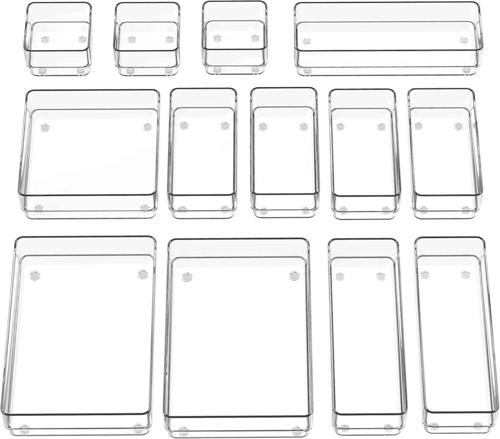 SMARTAKE 13-Piece Drawer Organizers with Non-Slip Silicone Pads, 5-Size Desk Bathroom Drawer Organizer Trays Storage Tray for Makeup, Jewelries, Utensils in Bedroom Dresser, Office and Kitchen, Clear