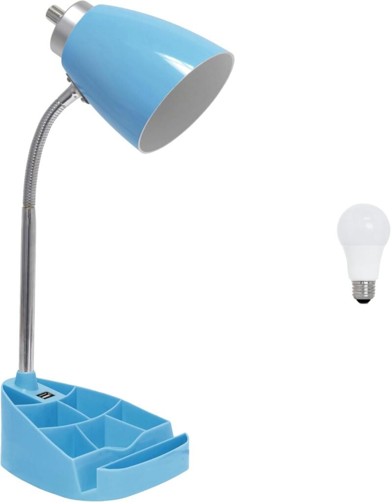 Simple Designs LD1056-BLU-LB 18.5″ Gooseneck Organizer Desk Lamp with iPad Tablet Stand Book Holder and USB Port, with LED Bulb, Blue