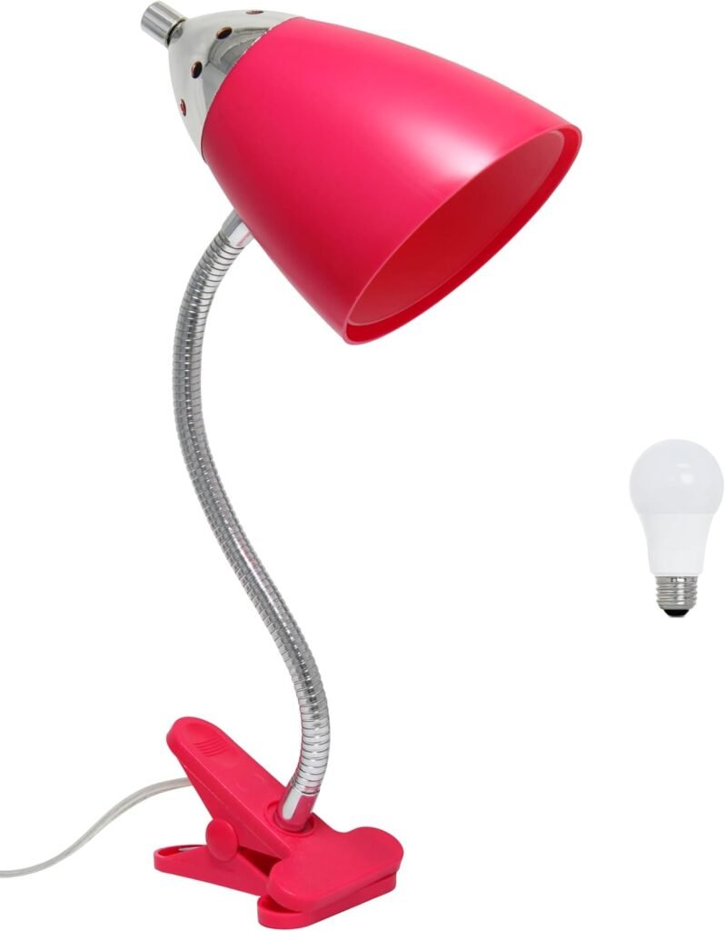 Simple Designs LD2001-PNK-LB 17.5″ Flossy Flexible Gooseneck Clip Light Desk Lamp with LED Bulb, Pink