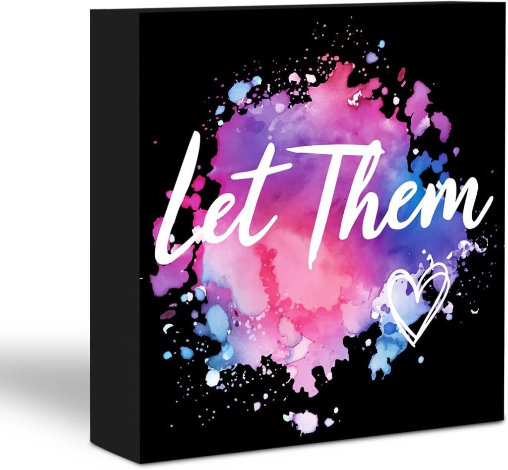 QOFO Let Them Inspirational Office Wood Box Decor, Office Decorations, Rustic Office Decor, The Office Gifts for Coworkers Friends, Wooden Sign Desk Gifts, Cubicle Decorations for Women Desk, 1