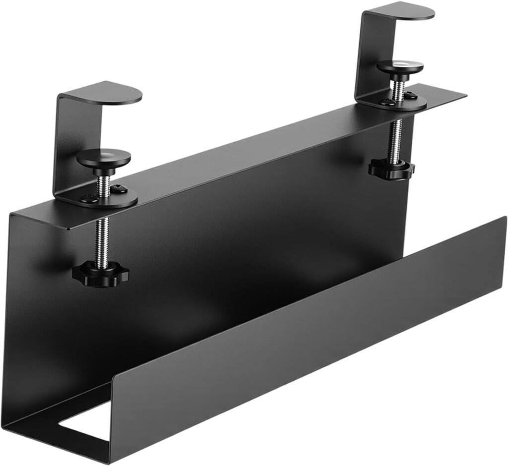 Under Desk 16 Inch Cable Management Tray No Drill Clamp-on Power Strip Cable Organizer Metal Wire Cord Tamer for Office Home(5×3in,Black)
