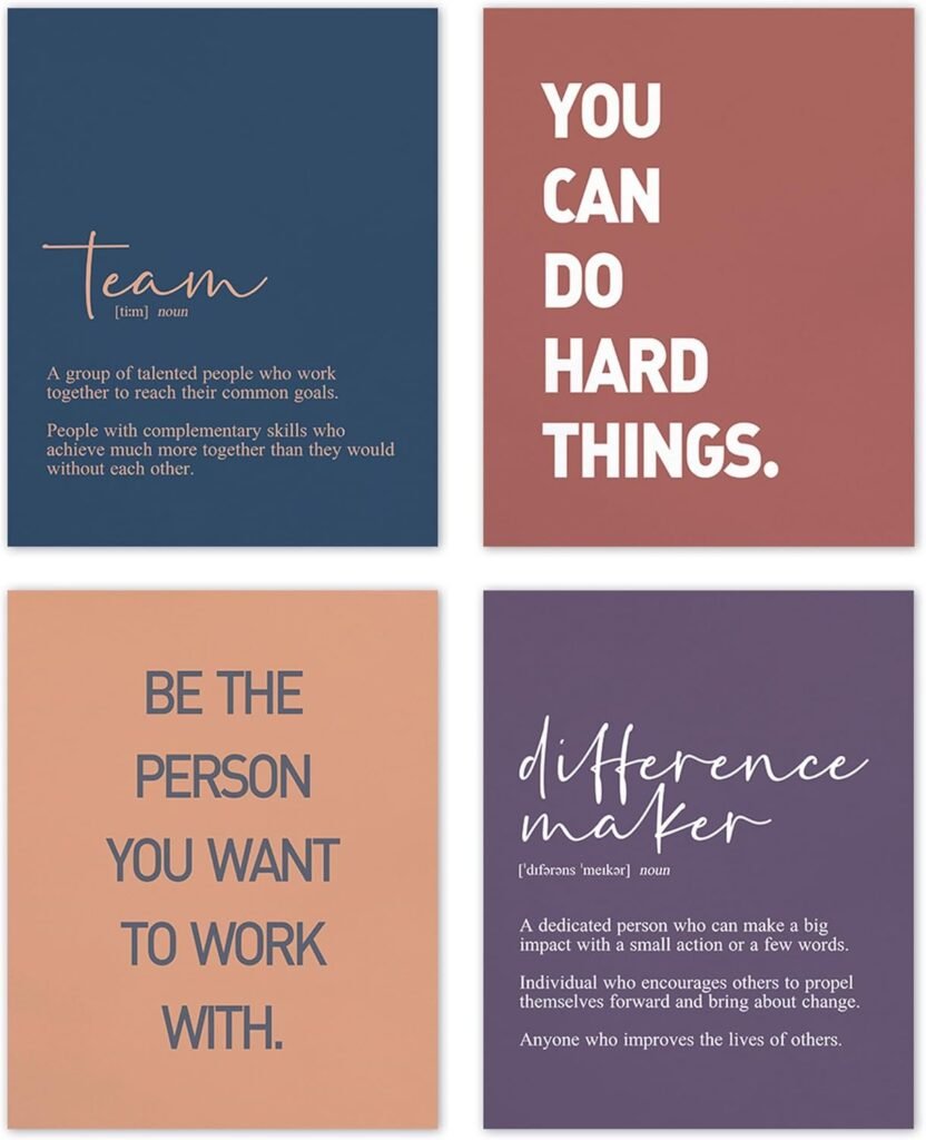 TLESKE Inspirational Motivational Office Decor Posters Prints Unframed Set of 4, Minimalist Wall Art Prints Decor, Positive Affirmations Team Teamwork Difference Maker Wall Pictures, 8×10
