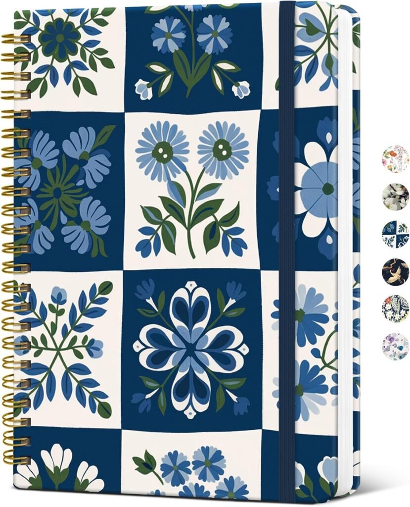 Taja Spiral Journal Notebook for Women, Pretty Hardcover Lined Notebook for Work & Note Taking, Aesthetic Cute Journal for Writing, 140 Pages, 6″x8″, Petal Array