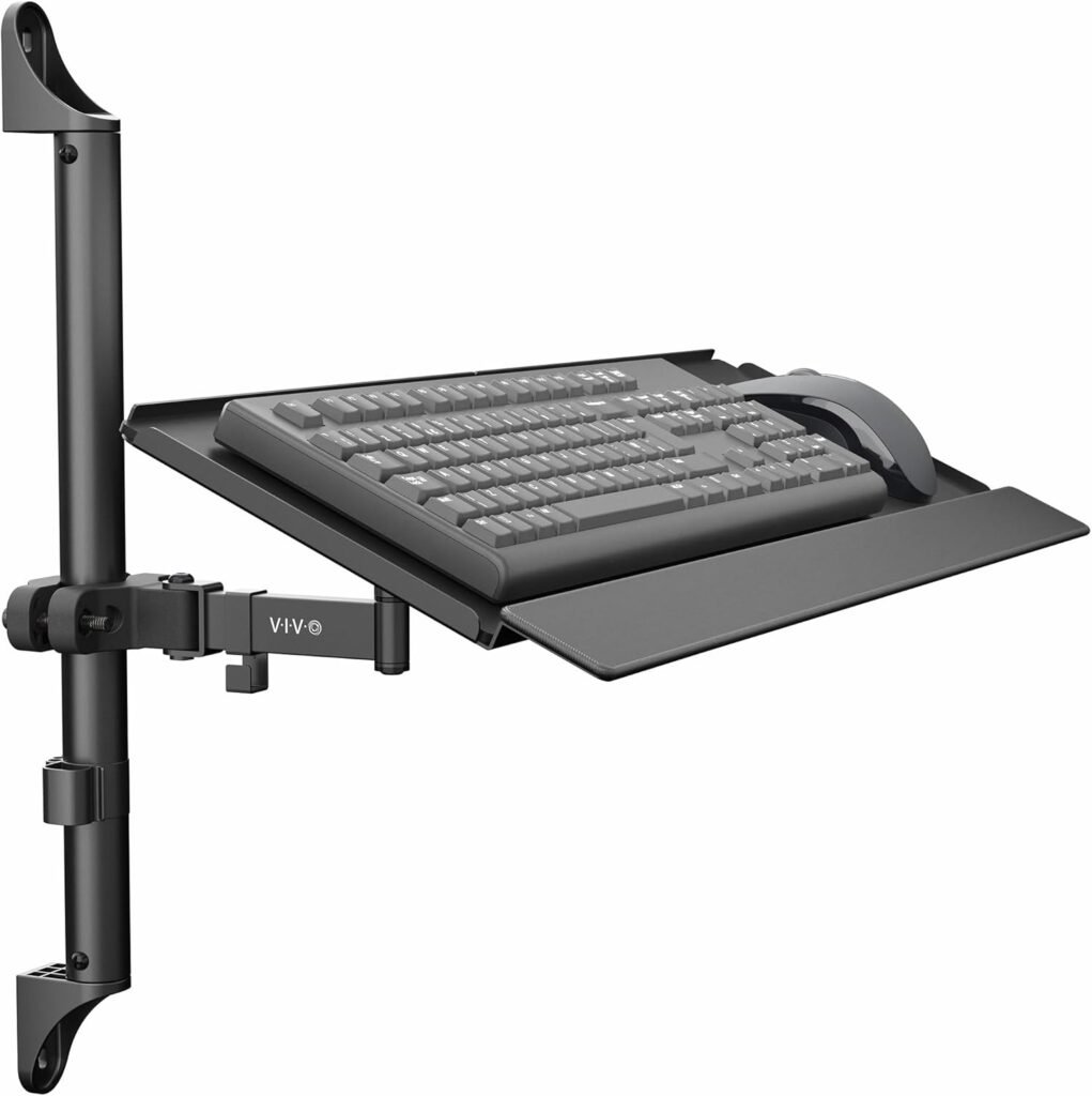 VIVO 26 Inch Keyboard and Mouse Tray Wall Mount with Wrist Pad, Tilt and Rotation, Standing Workstation Accessory for Ergonomic Typing, Black, Mount-WALLKB