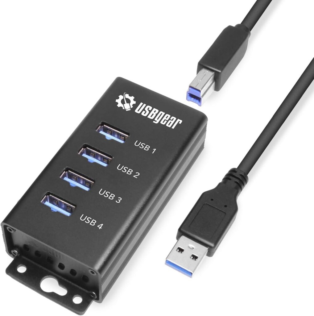USBGear 4 Port USB Hub 3.2 Gen 1 – Mountable SuperSpeed Data Hub with USB Ports for Laptop, PC, Desktop, and More, 5V/2A Power Adapter with Type-A to Type-B Cable (3ft), Computer Accessories