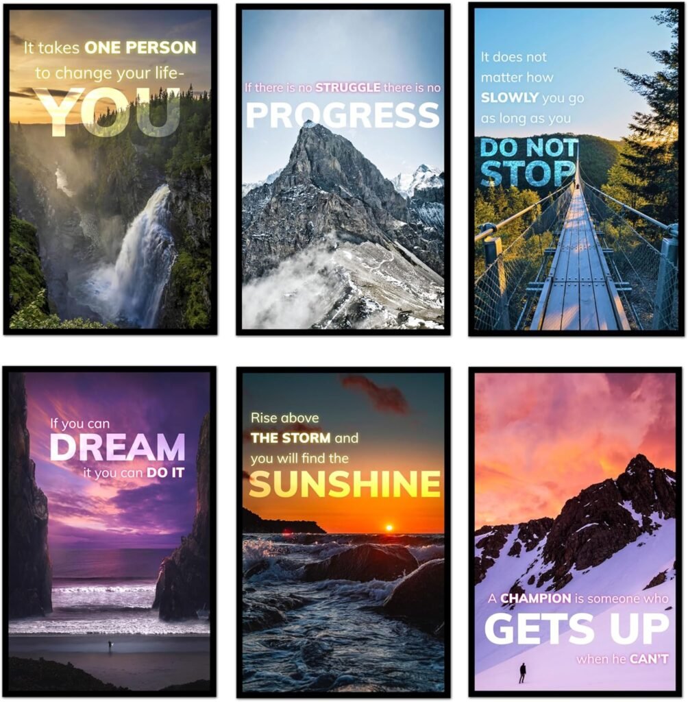 6 Inspirational Posters – Motivational Posters for Classroom, Gym, Postive Quotes on Nature Landscapes, Motivational Wall Art Decor. Inspirational Wall Art for Office. (unframed, 11×17″, Set of 6)