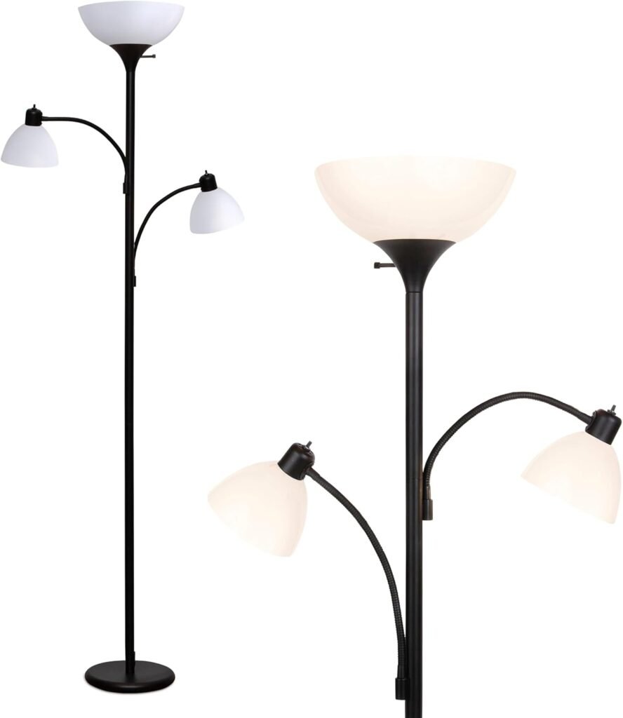 Brightech Sky Dome Double LED Floor Lamp, Torchiere Super Bright Floor Lamp with 2 Reading Lamps for Living Rooms & Offices – Dimmable Tall Standing Lamp for Bedroom Reading – Tall Black Pole