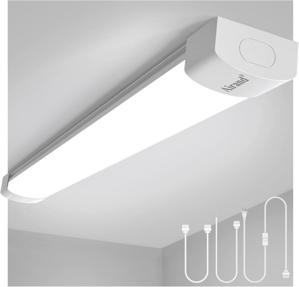 Airand Ceiling Lights LED Plug in 2ft Flushmount LED Tube Light 5000K Linkable Garage Light Fixture 18W Wraparound Ceiling Lamp Utility Shop Light Corded Under Cabinet Light with ON/Off Switch