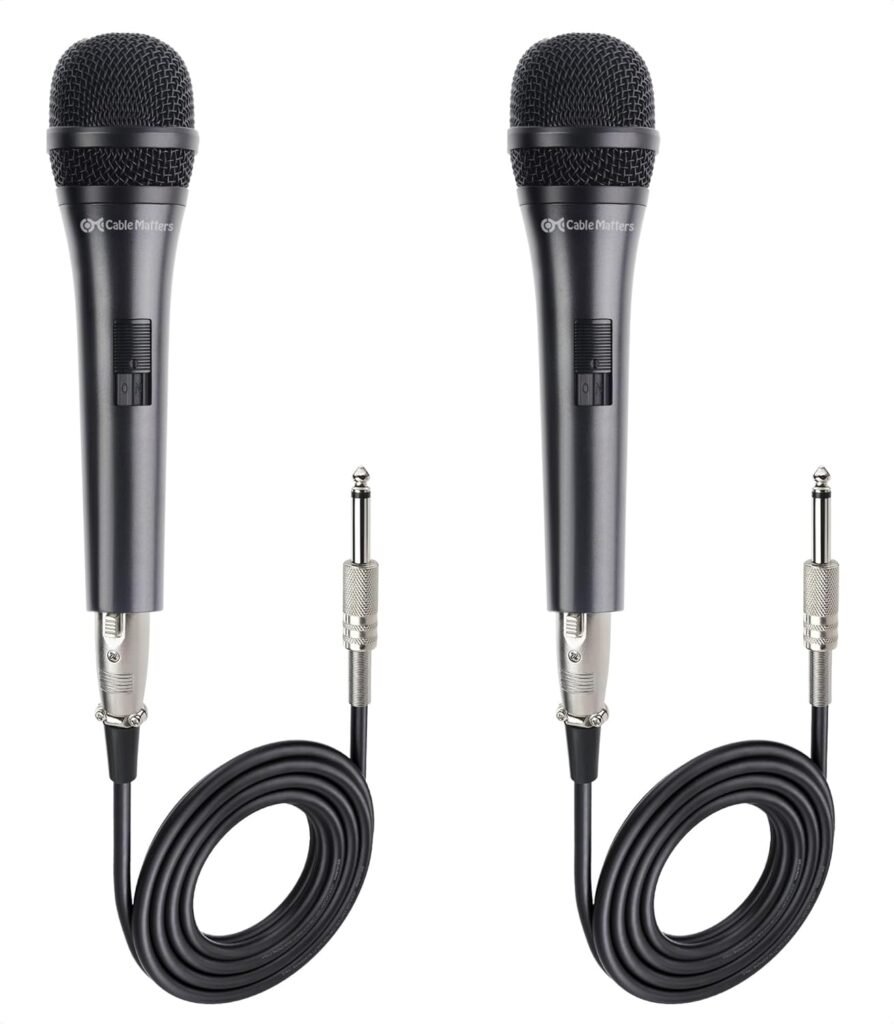 Cable Matters 2-Pack Cardioid Dynamic Vocal Microphones with 15 ft Cable, 6.35mm Wired Microphone for Singing/Singing Machine Karaoke Microphone