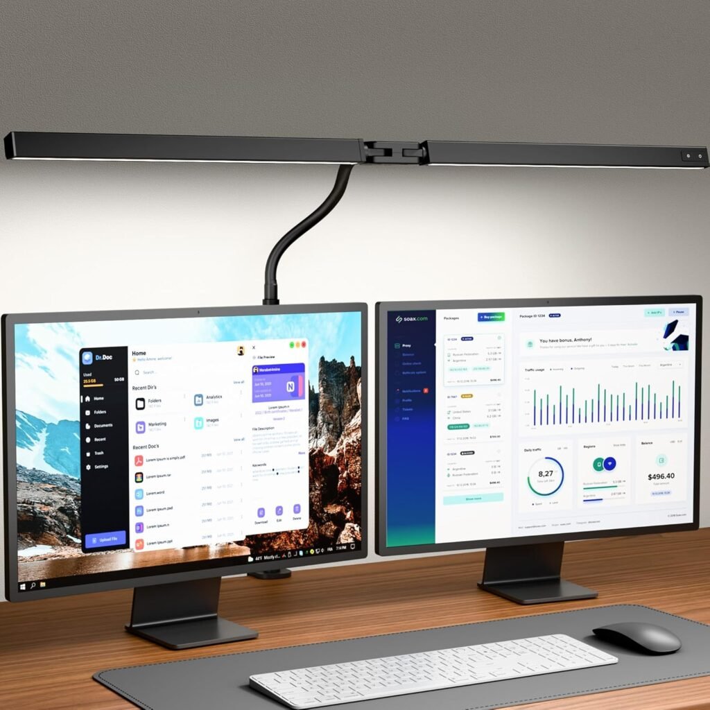 Eye-Caring Desk Lamp with Clamp, LED Desk Light Bar for Dual Monitors, Adjustable Gooseneck Table Lamp with 3 Color Modes, Smooth Dimming Office Desk Lamp for Home Office, Study, Computer Work