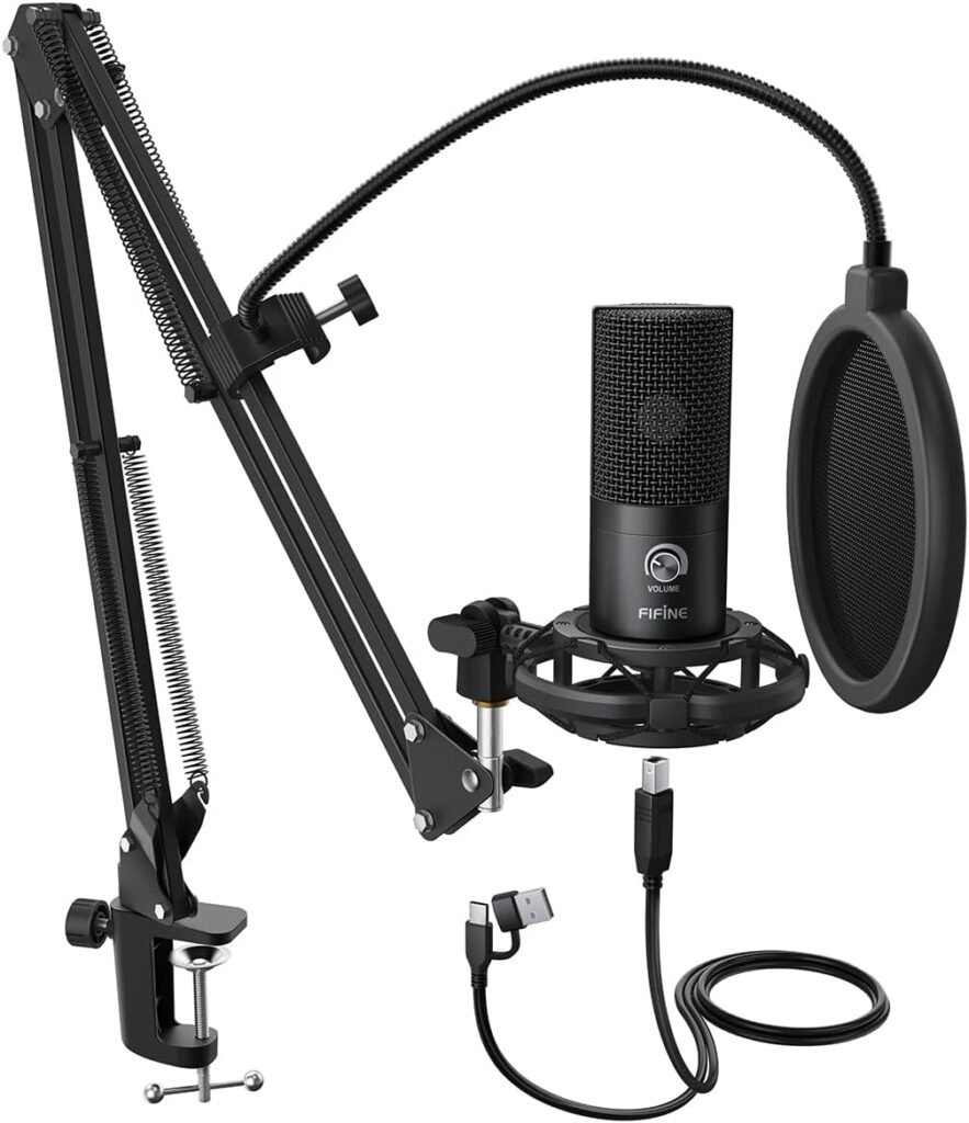 FIFINE Studio Condenser USB Microphone Computer PC Microphone Kit with Adjustable Boom Arm Stand Shock Mount for Instruments Voice Overs Recording Podcasting YouTube Vocal Gaming Streaming-T669