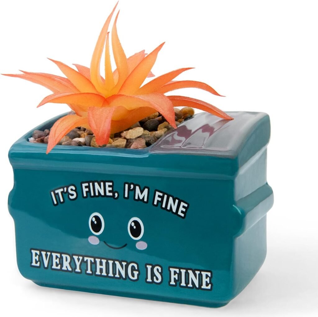 Dumpster Fire Fake Plants in Ceramic Succulent Pots Desk Decor, Emotional Support Positive Thinking Office Desk Accessories, Motivational Gifts for Women, Men, Coworkers