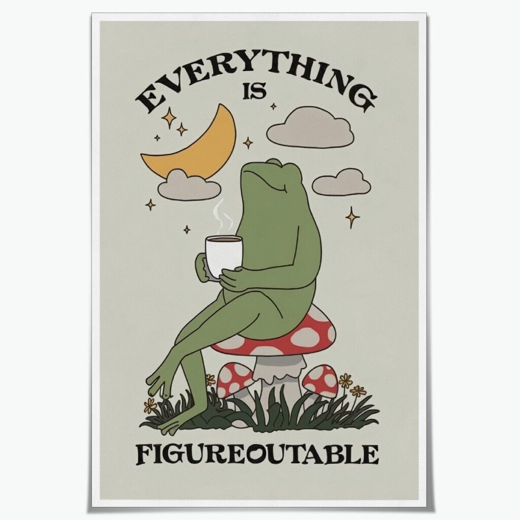 Everything is Figureoutable Motivational Canvas Wall Art Print Frog with Coffee Quote Inspirational Art Poster Mental Health Home Office Affirmation Wall Decor Minimalist Picture 8x12inch Unframed