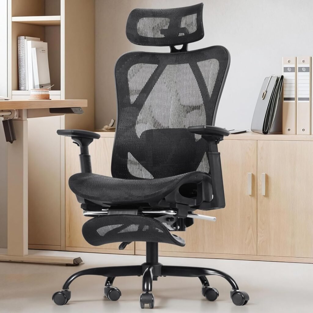 HOOBRO Ergonomic Office Chair, Office Computer Desk Chair with Footrest, Back Lumbar Support Flip-up 3D Armrest Executive Rolling Swivel Task Chairs & 90-135° Tilt Lock, Mesh Chairs for Men Women