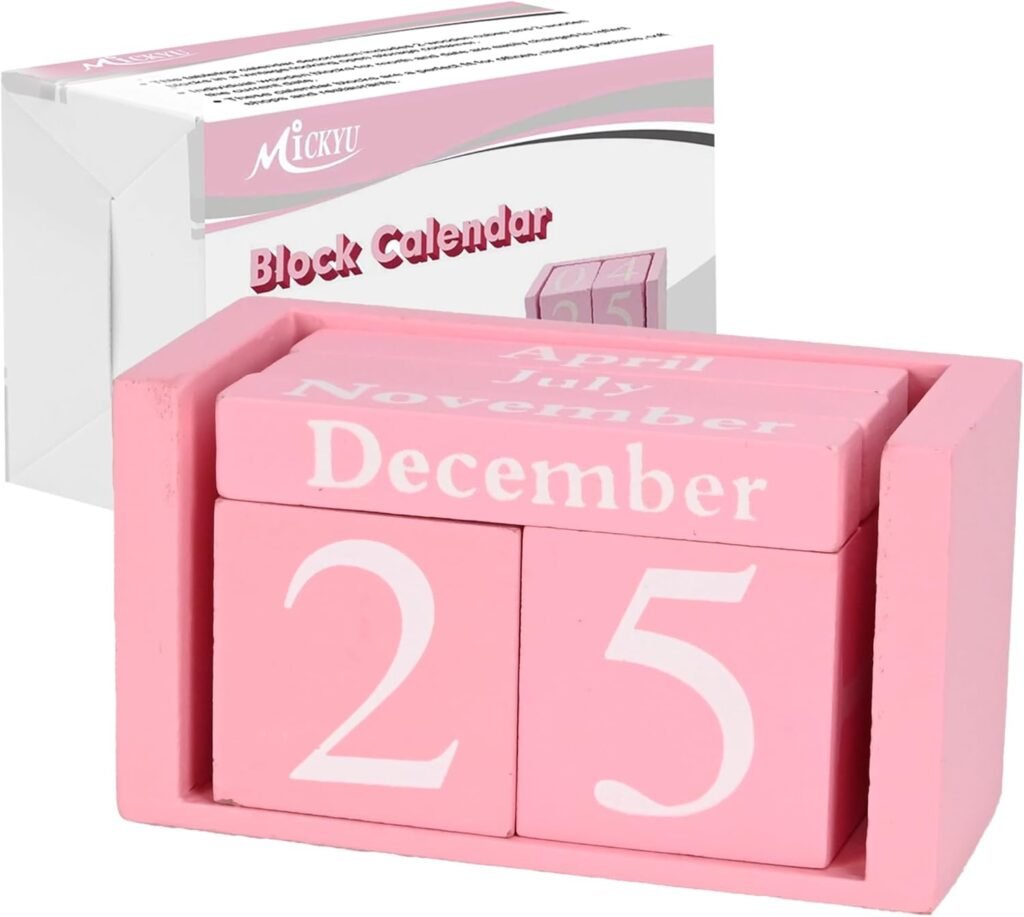 MICKYU Perpetual Wooden Desk Calendar – Pink Farmhouse Decor Block Calendar for Office, Home & Gifts – Reusable Daily Date Display