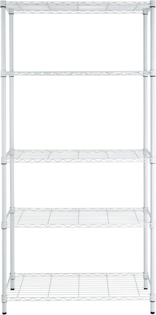 Honey-Can-Do 5-Tier Heavy-Duty Adjustable Shelves, Metal Storage Rack with 200-lb Shelf Capacity, White, 14″ W x 36″ L x 72″ H