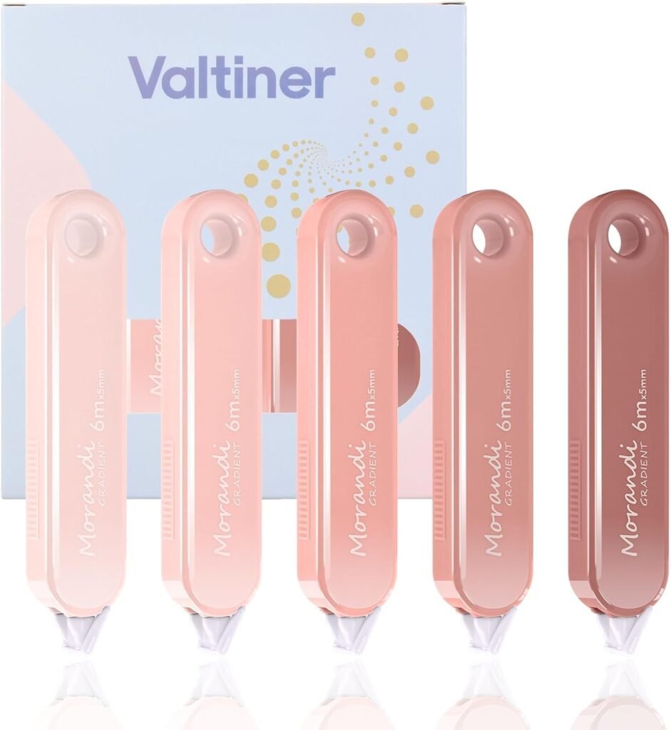 5-Piece Correction Tapes, Aesthetic Cute White Pull Out Tape, Quick Dry, Instant Correct, Easy to Use for School Office Supplies (Pink)