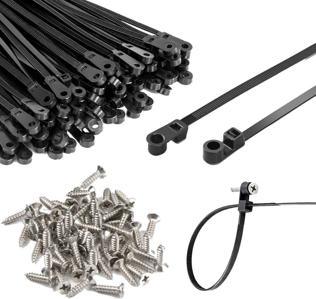 12-inch Black Screw-Hole Cable Ties, 100 lbs Tensile Strength, Screw-Mount Cable Ties/Cable Straps/Multi-Purpose Heavy-Duty Nylon Cable Ties (200-Pack)